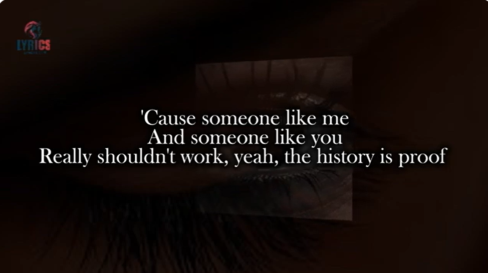 “’Cause someone like me / And someone like you / Really shouldn’t work, yeah, the history is proof / Damned if I don’t / Damned if I do / You know, by now, we’ve seen it all.”
